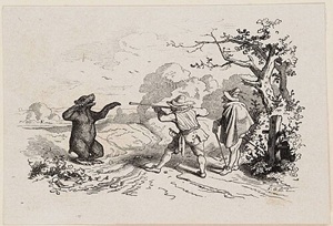 Es war einmal ein junger Kerl, der ließ sich als Soldat anwerben, hielt sich tapfer und war immer der vorderste, wenn es blaue Bohnen regnete. So lange der Krieg dauerte, ging alles gut, aber als Friede geschlossen war, erhielt er seinen Abschied, und der Hauptmann sagte, er könnte gehen, wohin er wollte. Seine Eltern waren tot, und er hatte keine Heimat mehr, da ging er zu seinen Brüdern und bat, sie möchten ihm so lange Unterhalt geben, bis der Krieg wieder anfinge. Die Brüder aber waren hartherzig und sagten: "Was sollen wir mit dir? Wir können dich nicht brauchen, sieh zu, wie du dich durchschlägst." Der Soldat hatte nichts übrig als sein Gewehr, das nahm er auf die Schulter und wollte in die Welt gehen. Er kam auf eine große Heide, auf der nichts zu sehen war als ein Ring von Bäumen, darunter setzte er sich ganz traurig niederund sann über sein Schicksal nach. 'Ich habe kein Geld,' dachte er, 'ich habe nichts gelernt als das Kriegshandwerk, und jetzt, weil Friede geschlossen ist, brauchen sie mich nicht mehr; ich sehe voraus, ich muß verhungern.' Auf einmal hörte er ein Brausen, und wie er sich umblickte, stand ein unbekannter Mann vor ihm, der einen grünen Rock trug, recht stattlich aussah, aber einen garstigen Pferdefuß hatte. "Ich weiß schon, was dir fehlt," sagte der Mann, "Geld und Gut sollst du haben, soviel du mit aller Gewalt durchbringen kannst, aber ich muß zuvor wissen, ob du dich nicht fürchtest, damit ich mein Geld nicht umsonst ausgebe." - "Ein Soldat und Furcht, wie paßt das zusammen?" antwortete er, "du kannst mich auf die Probe stellen." - "Wohlan," antwortete der Mann, "schau hinter dich." Der Soldat kehrte sich um und sah einen großen Bär, der brummend auf ihn zutrabte. "Oho," rief der Soldat, "dich will ich an der Nase kitzeln, daß dir die Lust zum Brummen vergehen soll," legte an und schoß dem Bär auf die Schnauze, daß er zusammenfiel und sich nicht mehr regte. "Ich sehe wohl," sagte der Fremde, "daß dirs an Mut nicht fehlt, aber es ist noch eine Bedingung dabei, die mußt du erfüllen." - "Wenn mirs an meiner Seligkeit nicht schadet," antwortete der Soldat, der wohl merkte, wen er vor sich hatte, "sonst laß ich mich auf nichts ein." - "Das wirst du selber sehen," antwortete der Grünrock, "du darfst in den nächsten sieben Jahren dich nicht waschen, dir Bart und Haare nicht kämmen, die Nägel nicht schneiden und kein Vaterunser beten. Dann will ich dir einen Rock und Mantel geben, den mußt du in dieser Zeit tragen. Stirbst du in diesen sieben Jahren, so bist du mein, bleibst du aber leben, so bist du frei und bist reich dazu für dein Lebtag." Der Soldat dachte an die große Not, in der er sich befand, und da er so oft in den Tod gegangen war, wollte er es auch jetzt wagen und willigte ein. Der Teufel zog den grünen Rock aus, reichte ihn dem Soldaten hin und sagte: "Wenn du den Rock an deinem Leibe hast und in die Tasche greifst, so wirst du die Hand immer voll Geld haben." Dann zog er dem Bären die Haut ab und sagte: "Das soll dein Mantel sein und auch dein Bett, denn darauf mußt du schlafen und darfst in kein anderes Bett kommen. Und dieser Tracht wegen sollst du Bärenhäuter heißen." Hierauf verschwand der Teufel.